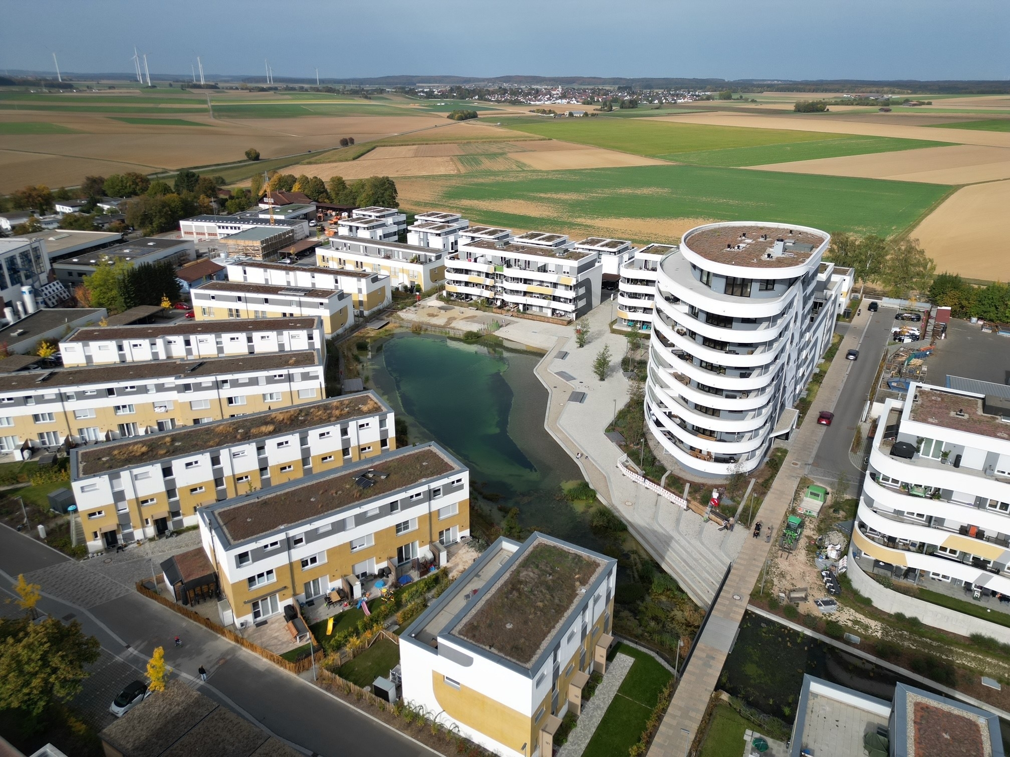 Mit dem Gemeinschaftsprojekt von Strenger, Baustolz und Wohnstolz wird in Dornstadt bei Ulm Realität, was heute nicht mehr selbstverständlich ist: das Zusammenleben mehrerer Generationen im Einklang mit der Natur. Sei es in den 14 designorientierten Strenger Doppelhaushälften, den 40 Eigentumswohnungen im exklusiven Strenger Wohnturm oder den 70 clever geplanten Baustolz Reiheneigenheimen und den 87 attraktiven Wohnungen von Baustolz und Wohnstolz.