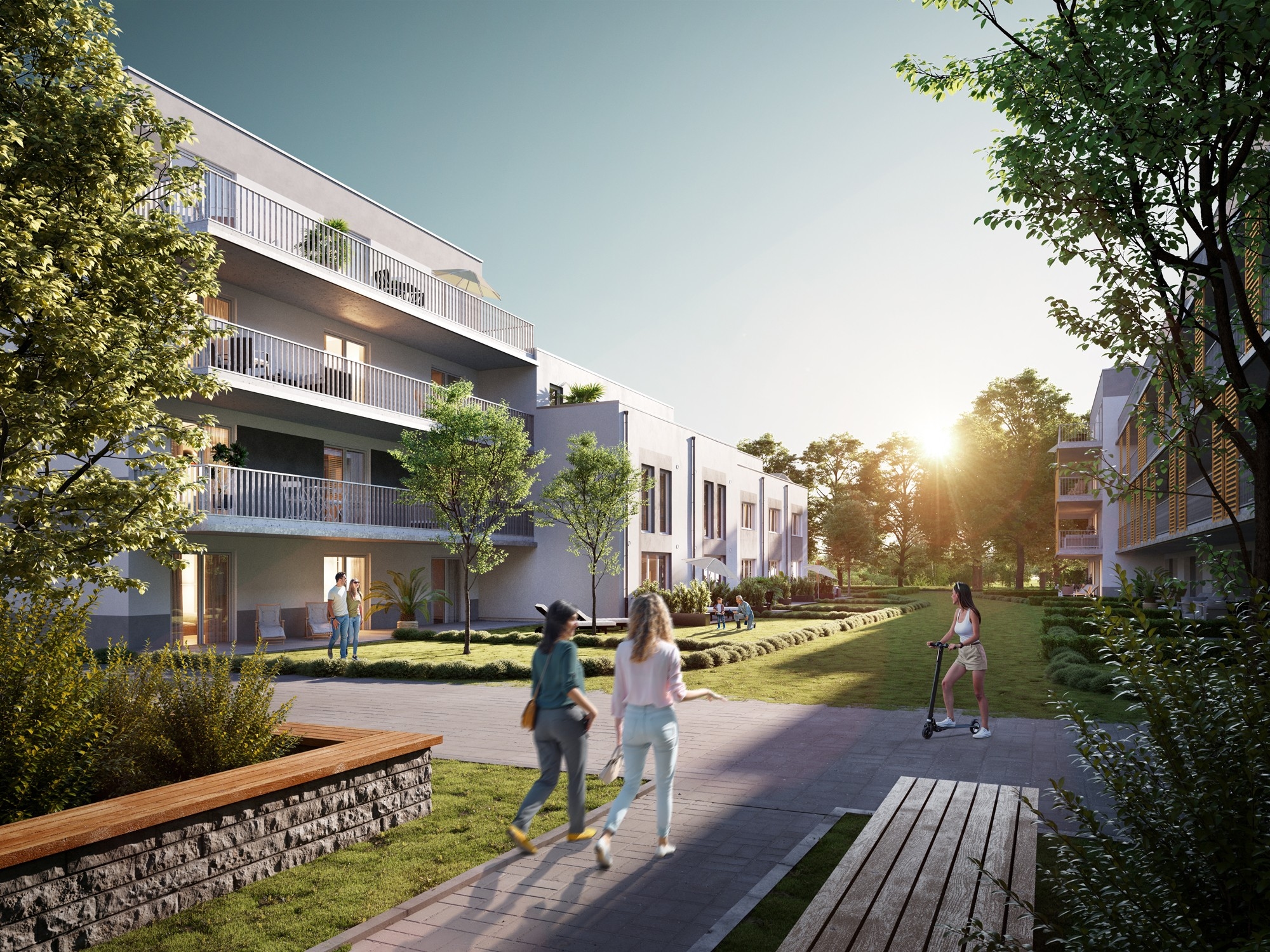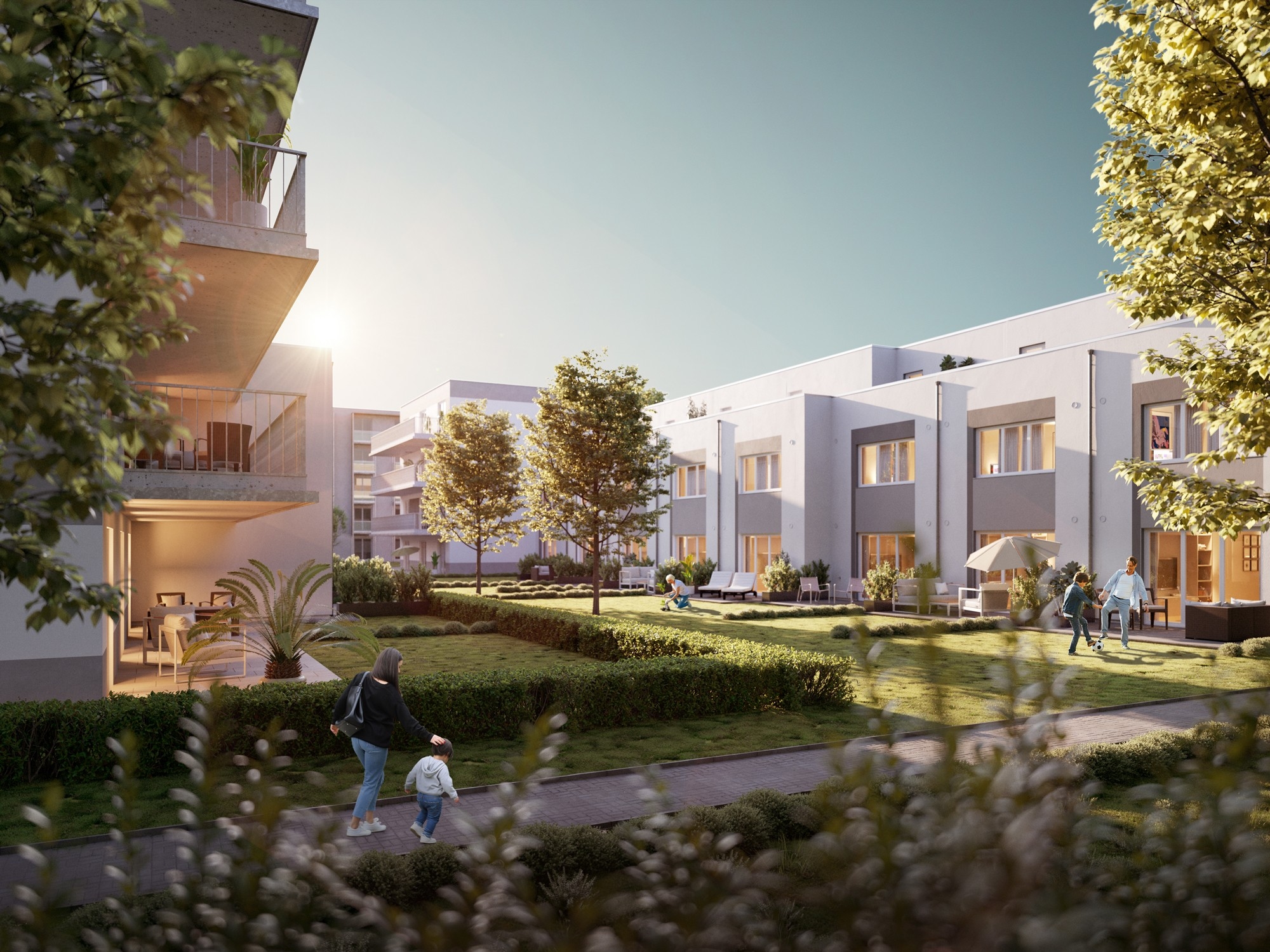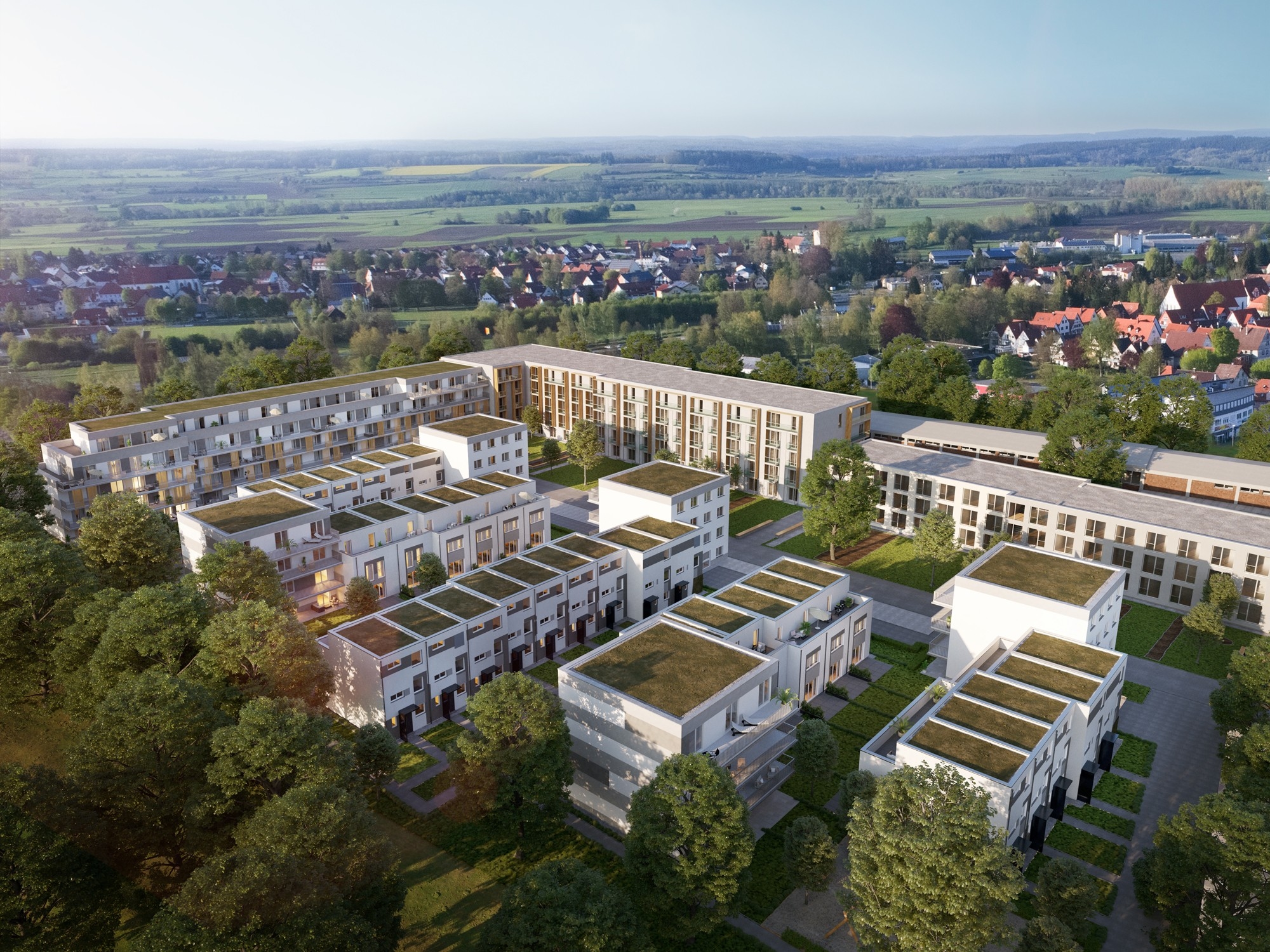 Baustolz baut für Sie in Augsburg-Oberhausen 66 Eigentumswohnungen mit Wohnflächen zwischen 27 und 97 m² sowie 30 Stadthäuser von 120 bis 142 m². Augsburg-Oberhausen ist ein Stadtteil im Nordwesten von Augsburg. Alle Geschäfte des täglichen Bedarfs, schulische Einrichtungen und Kindergärten sowie ärztliche Versorgung befinden sich in der Nähe. Die Verkehrsanbindung ist ebenfalls optimal, mit der Bahn sind Sie in 30 Minuten am Hauptbahnhof München bzw. Hauptbahnhof Ulm. Die Tram Haltestelle „Alpenhof“ ist nur wenige Gehminuten entfernt, von dort gelangen Sie in wenigen Minuten ins Zentrum von Augsburg. PKW-Fahrer sind über die B17 und den Anschluss an die A8 optimal angebunden.