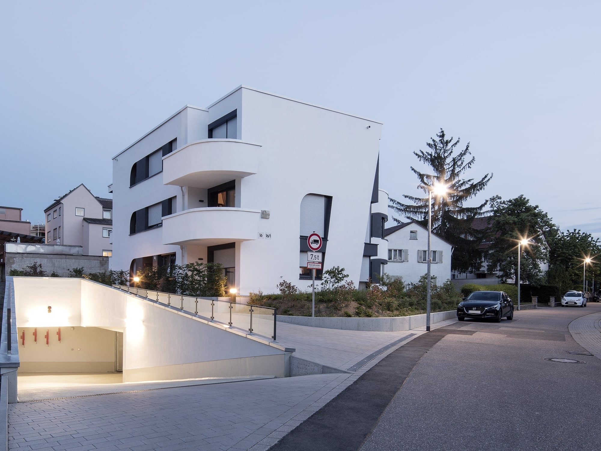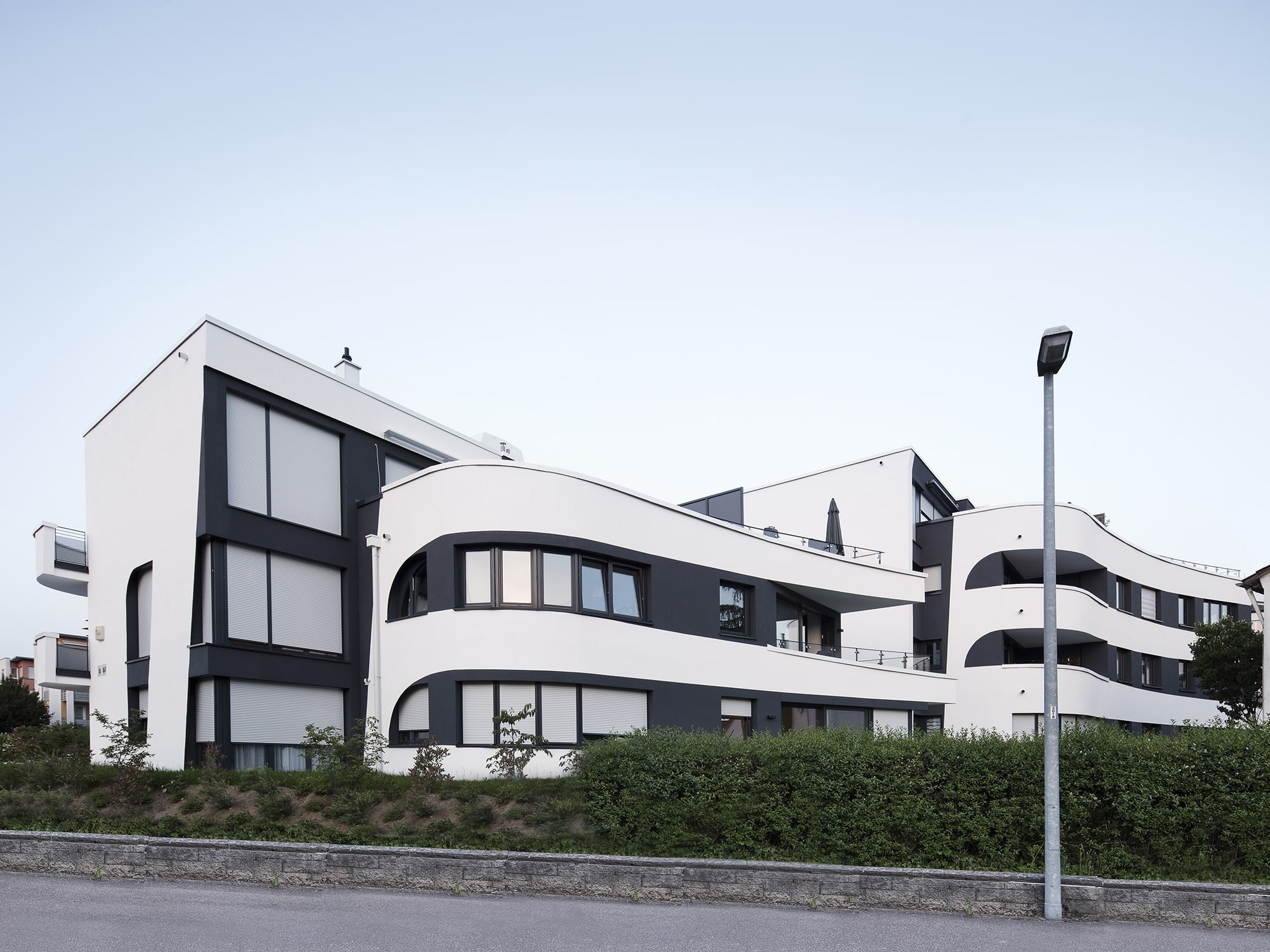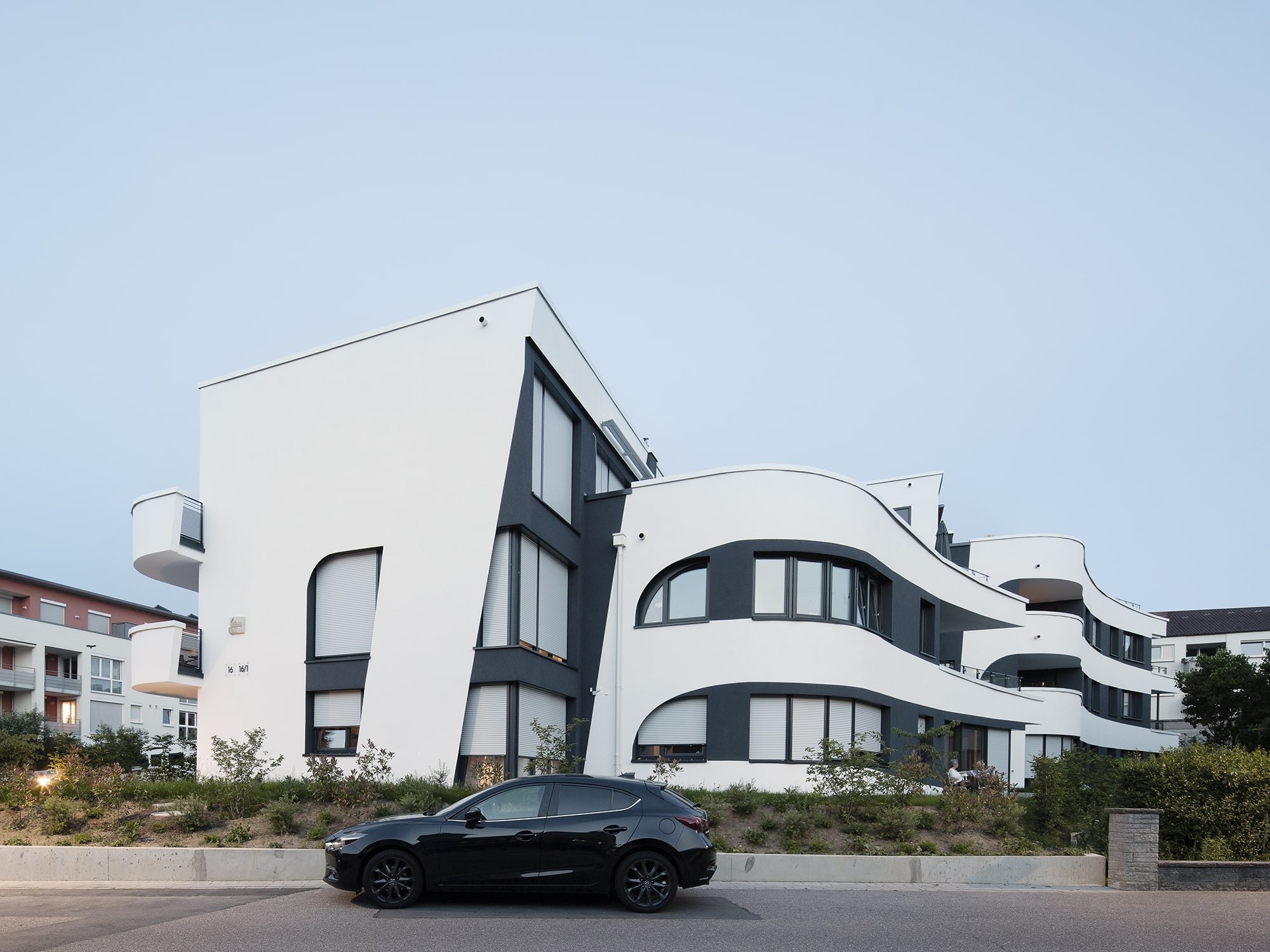 Sanft geschwungene Fassaden, abgerundete Fenster und Balkone – mit seinen fließenden Formen fügt sich das Strenger-Neubauprojekt City-Wave perfekt in die umliegende Natur ein. Die besondere Architektur ist angepasst an die Enzauen, die nur wenige Gehminuten vom Haus entfernt beginnen. Der Mehrfamilienkomplex in dem gewachsenen und ruhigen, aber dennoch zentralen Wohngebiet bietet insgesamt 19 Wohnungen und besticht durch sein schlichtes und modernes Design.