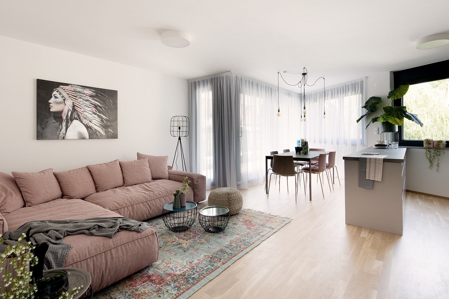 Mit nur acht beziehungsweise elf Einheiten pro Hauseingang entsteht eine übersichtliche Nachbarschaft, die exklusives Wohnen ermöglicht. Die Wohnungen sind zwischen 52 und 104 m² groß, die Bewohner im Erdgeschoss kommen zudem in den Genuss eines eigenen Gartens mit Süd-West-Ausrichtung. Nicht nur die hauseigene Paketstation und die gemeinschaftlich nutzbare Stromtankstelle für E-Cars sind Besonderheiten dieses Objekts- lassen Sie sich überraschen!