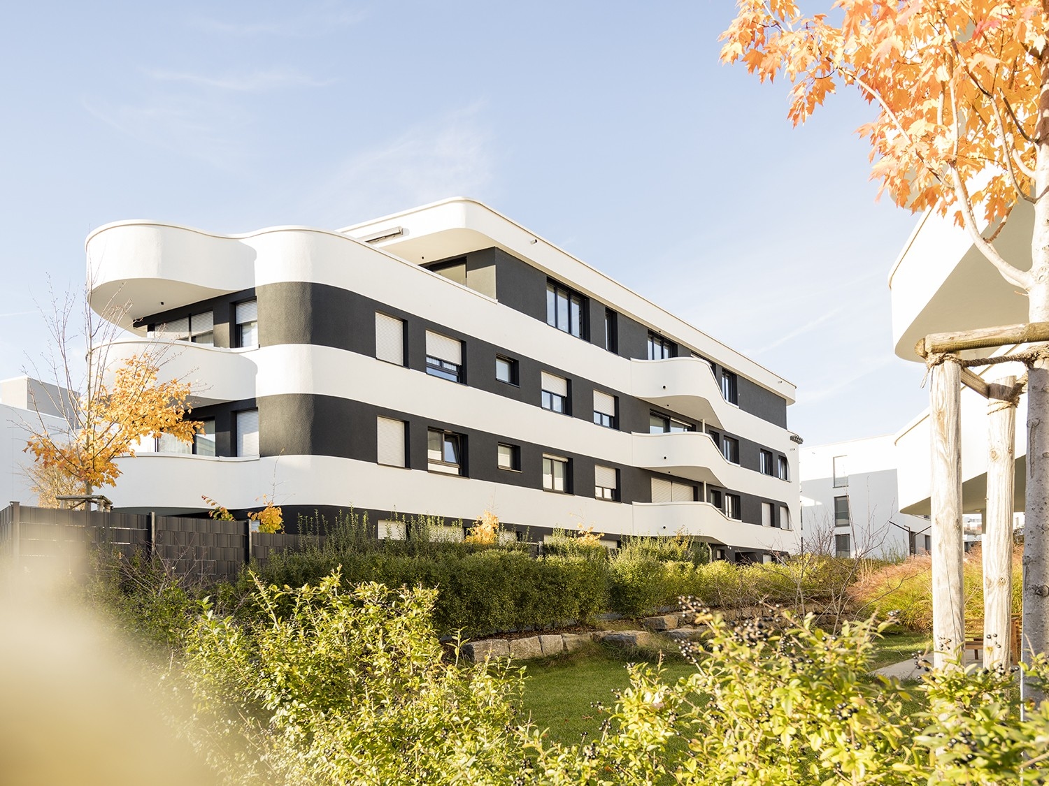 Markante Architektur mit weich geschwungenen Fassaden und fließenden Formen
