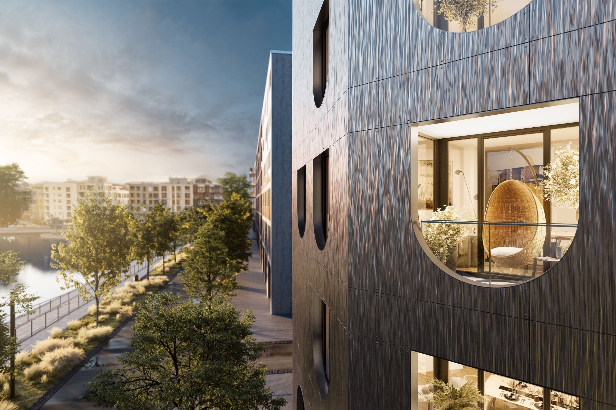 Die drei individuellen Designhäuser von Hadi Teherani Architects und Raff Architekten sind echte Gewinner. Aus 176 Beiträgen wurden sie beim Architekturwettbewerb der Stadt Heilbronn für den zweiten Bauabschnitt des Neckarbogens auf dem ehemaligen BUGA-Gelände ausgewählt. In welches der drei Häuser Sie auch einziehen werden, genießen Sie das gute Gefühl, sich nicht zwischen nachhaltiger Bauweise und herausragender Architektur entscheiden zu müssen.