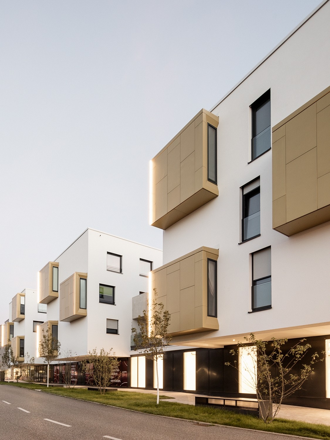 Ausdrucksstark präsentiert sich das Wohn- und Geschäftshaus von Strenger nach allen vier Seiten mit einem Mix aus unterschiedlichen Elementen. In bester Innenstadtlage und fußläufig zum S-Bahnhof überzeugen die  Objekte durch exklusive Designausstattung und eine hochwertige Architektursprache.