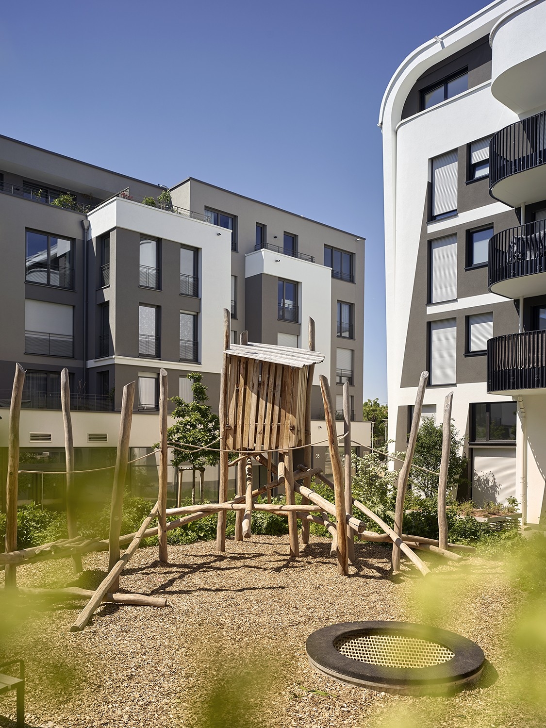 Ein attraktives Stadtquartier mit ganz neuen Möglichkeiten für die Bewohner auf dem Gelände des ehemaligen Güterbahnhofs, welches in mehrere sogenannte Höfe für die Bebauung unterteilt ist. Im fünften Hof errichtete Strenger seinen Wohnkomplex mit insgesamt fünf Eingängen – das Carré 5.