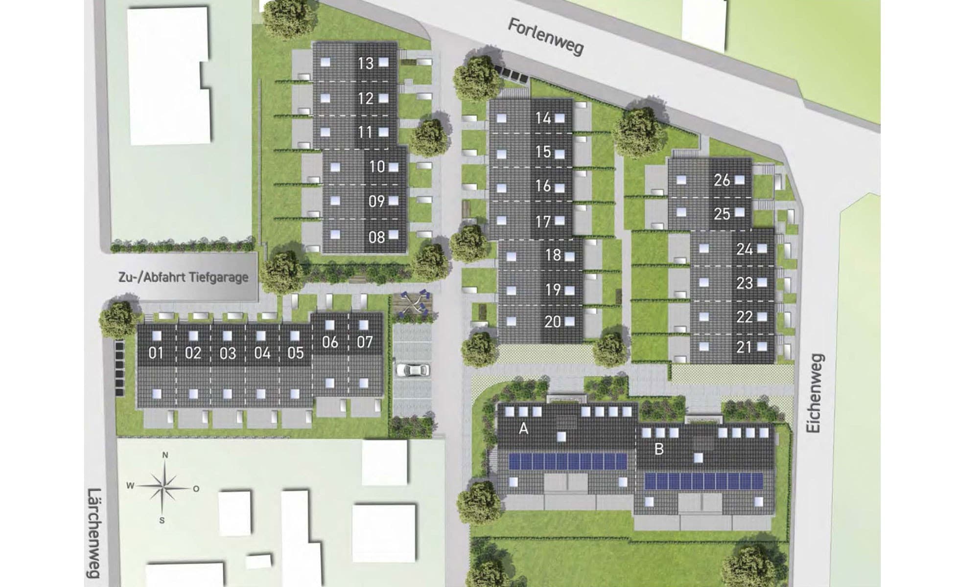Bei Karlsruhe, direkt am Waldrand entstehen 26 Baustolz-Reihenhäusern von den Haustypen Jazz und HipHop. Quer durch das Wohngebiet zieht sich ein Grünstreifen, der mit gemütlichen Plätzen dazu einlädt sich mit Nachbarn und Freunden zu treffen. Und falls Sie doch einmal in die Stadt möchten, erreichen Sie Karlsruhe und Bruchsal in nur 15 Minuten mit dem Auto oder der S-Bahn.