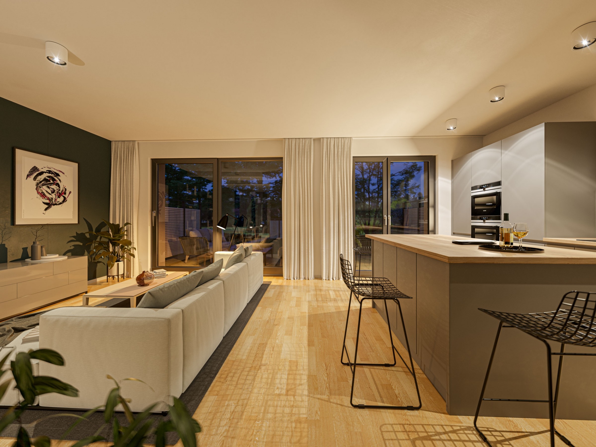 Exklusives Design: Lichte Deckenhöhe bis zu 2,70 m, herausragende Architektur, Designbäder und -küchen, große Fensterfronten, hochwertiges Interieur, integriertes Lichtkonzept